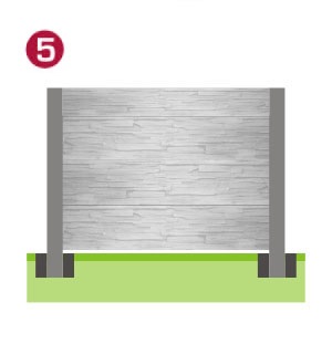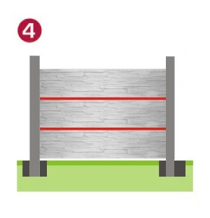 Nachdem der Beton ausgehärtet ist, setzen Sie die erforderliche Anzahl von Betonplatten in die Säulen ein. Prüfen Sie das Gleichgewicht visuell und mit einer Wasserwaage.